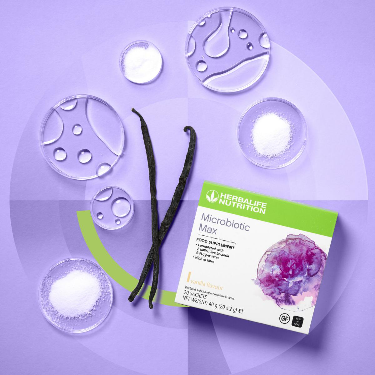 Max je dodatak prehrani u prahu ekskluzivno formuliran s kombinacijom živih bakterija i vlakana, čije skladno djelovanje pomaže u ostvarivanju vaših ciljeva u prehrani. Ovaj proizvod je bogat vlaknima, a svaka porcija sadrži 2 milijarde živih bakterija iz sojeva Bifidobacterium lactis i Lactobacillus helveticus. Jednostavno uključite Microbiotic Max u svoju svakodnevnu rutinu. Ovaj jedinstveni dodatak prehrani ne treba se čuvati u hladnjaku, a pojedinačne porcije pakirane su u praktične vrećice. Jednostavno umiješajte u pola čaše vode ili umiješajte u svoj omiljeni shake i uživajte u nježnom okusu vanilije.